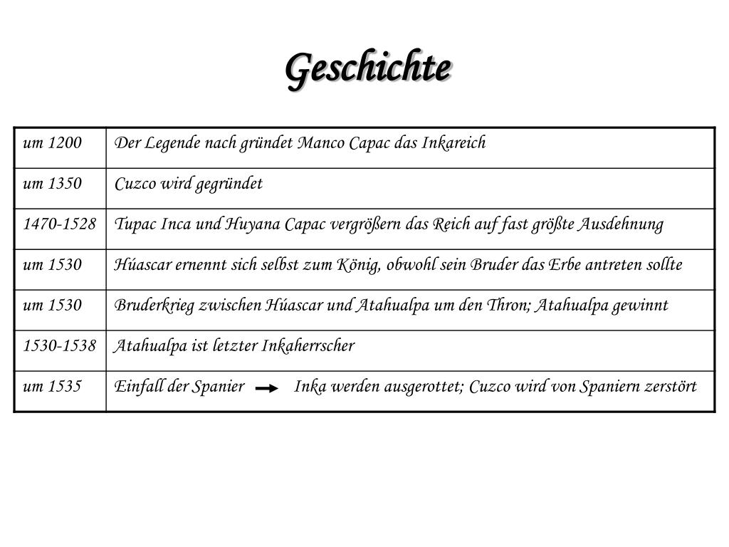 Die auswahl wurde auf 25 dokumente mit der … Später aber wurde das ganze volk „inka" genannt.